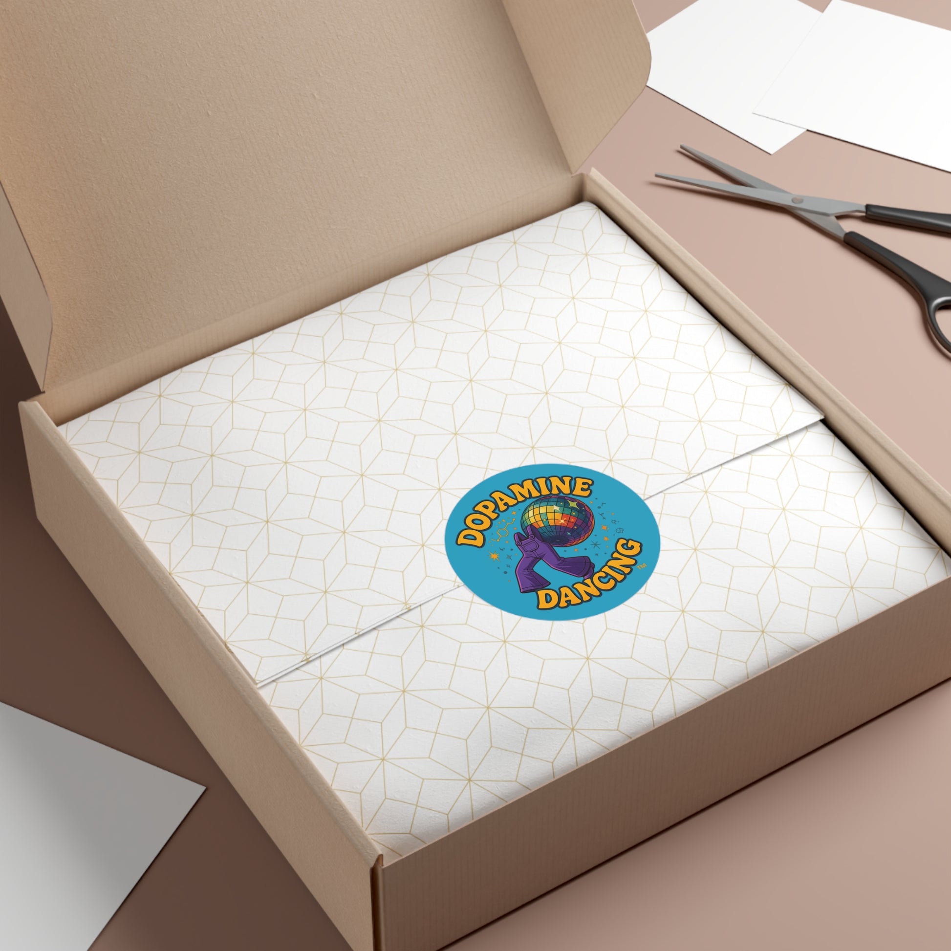 Add a touch of disco vibe to your belongings with these round vinyl 3 x 3 stickers featuring the DopamineDancing design. Perfect for those who love vibrant colours and want to protect their stickers with UV laminate. Ideal for indoor or outdoor use, these stickers are made with premium vinyl that can last over 5 years in any weather condition. Eco-friendly and waterproof, these stickers are easy to peel and apply.
